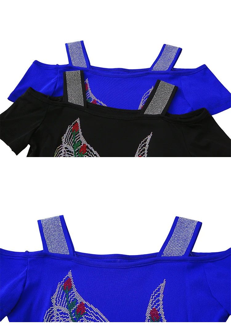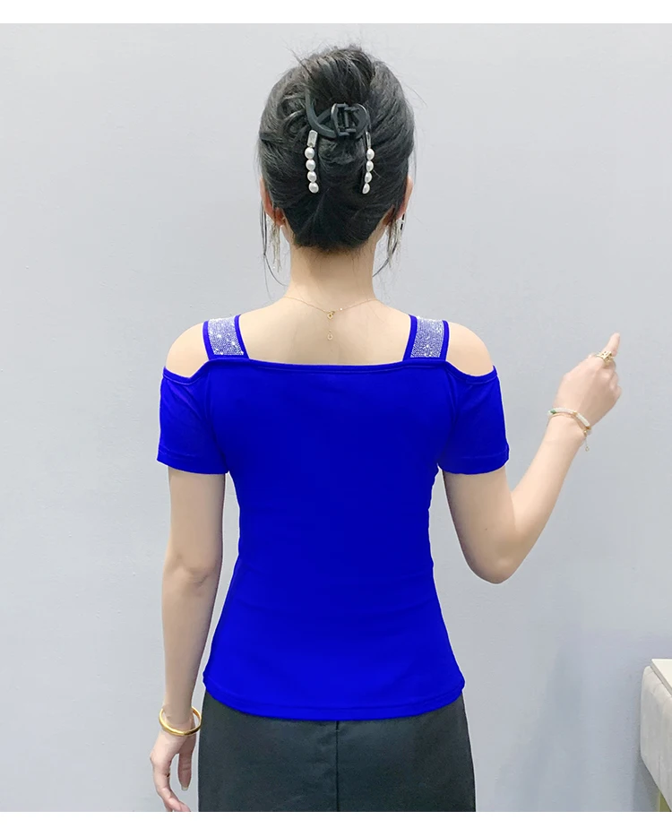 M-3XL Streetwear Girl Classic Summer T-Shirt Shiny Butterfly Hot Diamonds Design Tees Fashion Women’s Sexy Off The Shoulder Tops